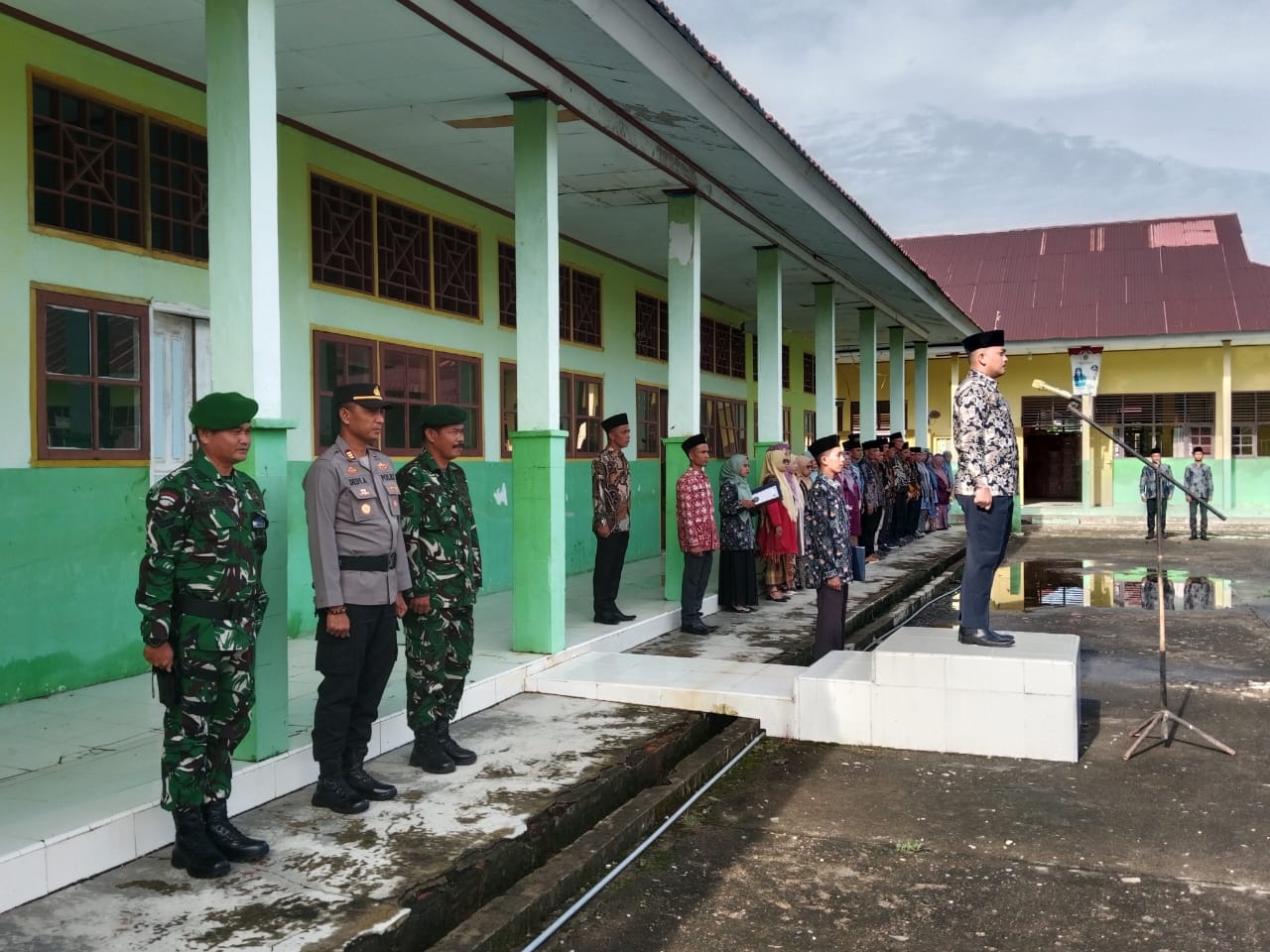 “Untuk itu marilah kita bersama-sama bermunajat, memanjatkan puji syukur kehadirat Tuhan Yang Maha Pemurah, atas limpahan rahmat dan karunia-Nya untuk kita dan seluruh rakyat Indonesia dalam mendukung dan meningkatkan mutu pendidikan,” ujar Kapolsek BAB Tapan AKP Dedy Arma,S.H,M.H