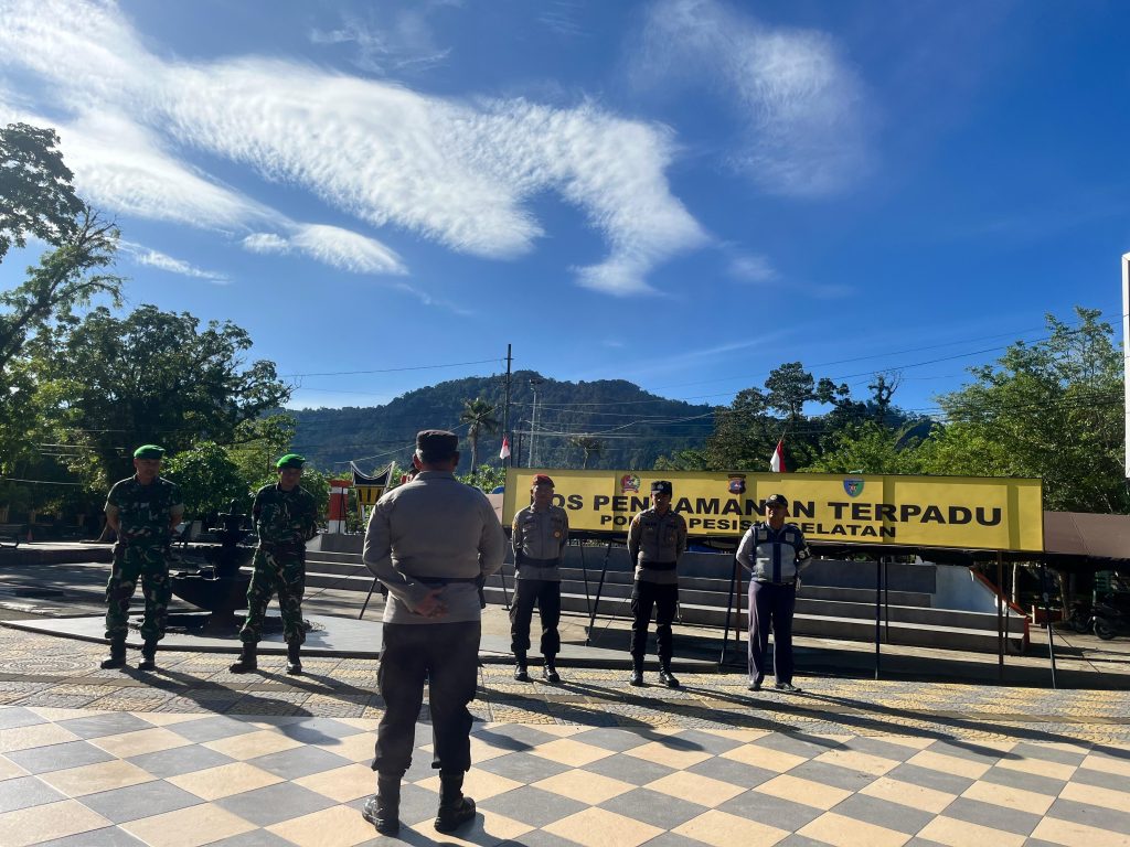 Apel siaga yang berlangsung di pos pengamanan ini dipimpin oleh Kasubag Ren Polres Pesisir Selatan, AKP Zul Adri. Dalam arahannya, ia menekankan agar seluruh personel, yang terdiri dari anggota Polres Pessel, TNI, Satpol PP, dan Dishub, melaksanakan tugas dengan penuh rasa tanggung jawab. Perintah dari pimpinan Polres Pesisir Selatan ini menjadi pedoman dalam memastikan situasi tetap kondusif.