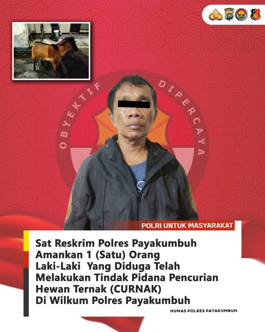 Payakumbuh,Sumbar24jam.com – Gabungan Tim Opsnal Sat Reskrim Polres Payakumbuh bersama Tim Opsnal Polsekta Payakumbuh meringkus seorang tersangka pelaku pencurian ternak jenis Kambing di sebuah pondok yang beralamat di Kelurahan Koto Panjang Dalam Kecamatan Lamposi Tigo Nagari, Jum’at (3/10).