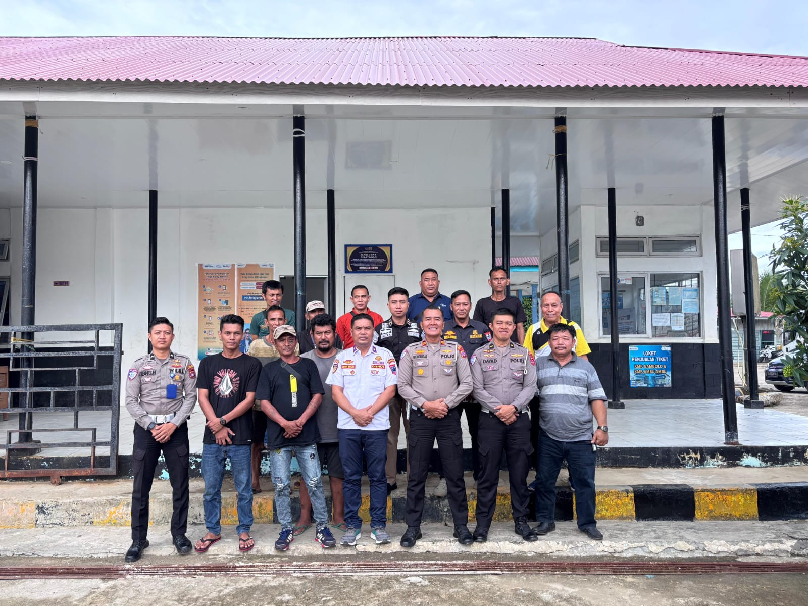 Tuapejat Mentawai Sumbar24jam.com : selasa 7/10/25 Kapolres kepulauan Mentawai melalui Kasat Lantas Kep.Mentawai IPTU Wendrizal, SH bersama Dinas perhubungan Kep.Mentawai adakan pertemuan dengan para sopir kendaraan muatan barang Truk yang bermuatan barang barang keperluan masyarakat dipenyebrangan Tuapejat – Padang ,