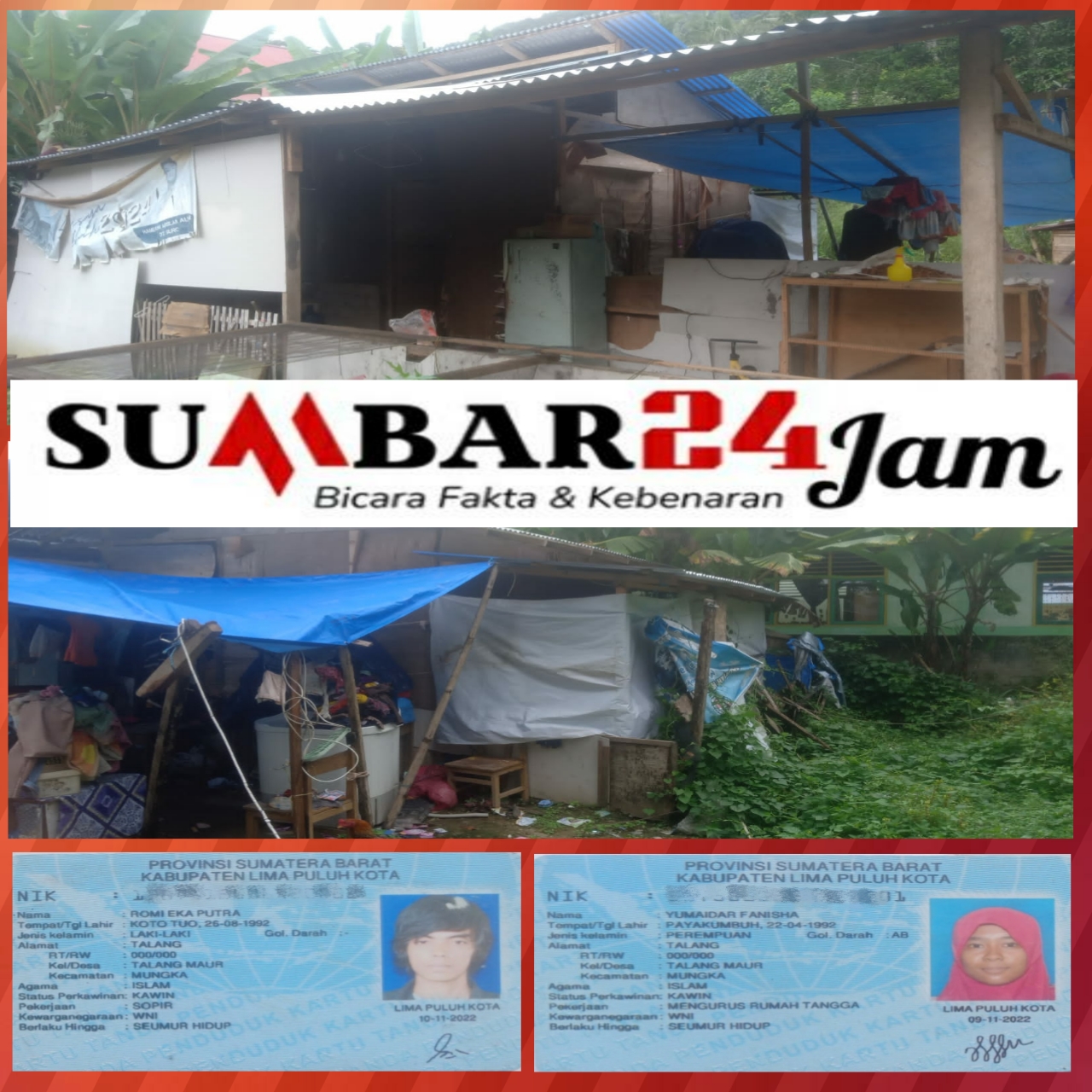 Berlantaikan semen berdindingkan triplek seadaanya berpenghuni 6 orang, rumah ini terletak di jorong Talang Maur Kecamatan Mungka Kabupaten 50 Kota Sumatera Barat.