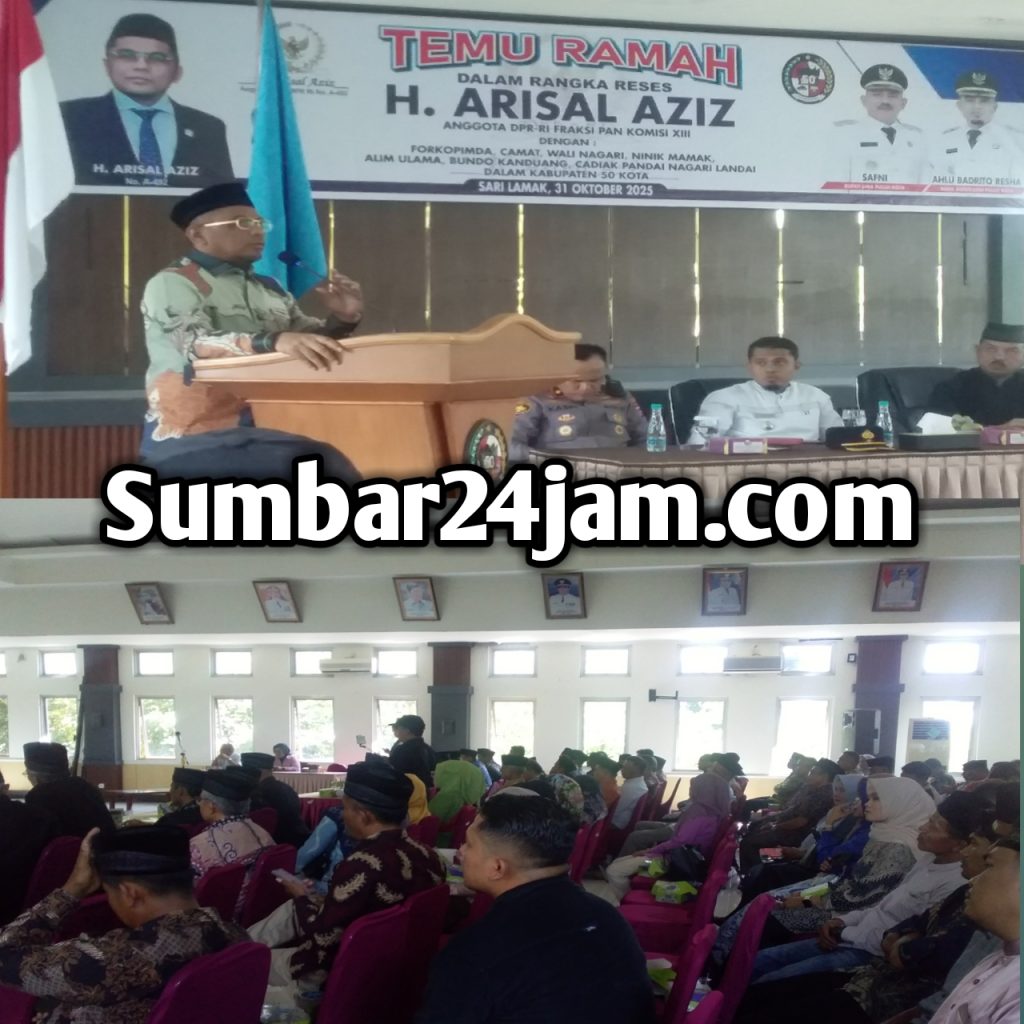 Limapuluh Kota,Sumbar24jam.com – Anggota DPR RI Komisi XIII H.Arisal Aziz bersama Partai PAN 50 Kota berkomitmen nyata sebagai partai yang benar-benar bersama rakyat dan untuk rakyat. Persoalan tanah ulayat yang tengah viral dan menyita perhatian Publik ini terletak di Jorong Landai, Nagari Harau.