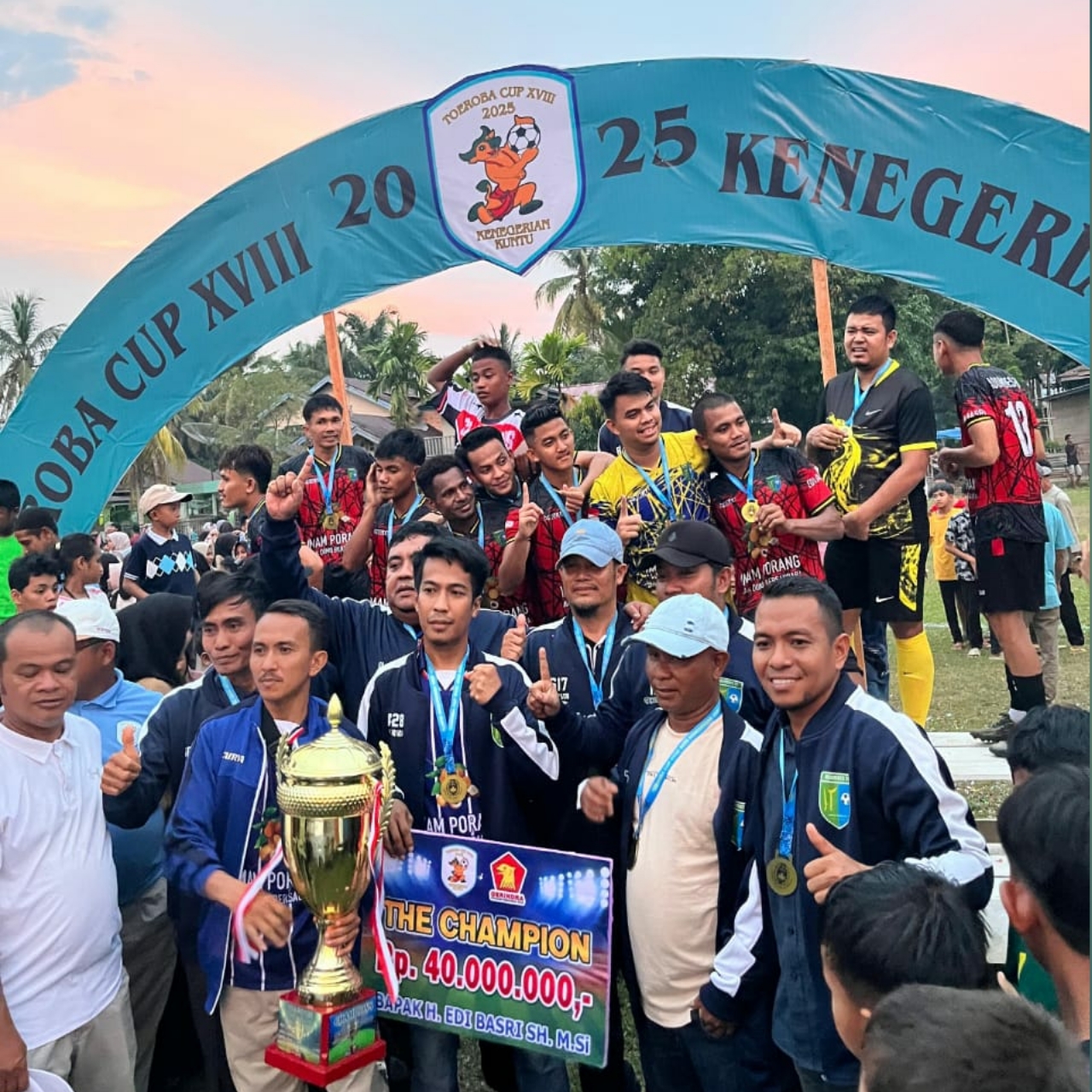 Kampar,Sumbar24jam.com – Adombes Fc Desa Domo, Kecamatan Kampar Kiri, Kabupaten Kampar, Provinsi Riau berhasil menjadi juara pada turnamen Turobacup XVIII 2025. Juara tersebut, diraih setelah Adombes FC berhasil mengalahkan Podesra FC pada saat pertandingan babak Grand Final dengan skor 3-0.