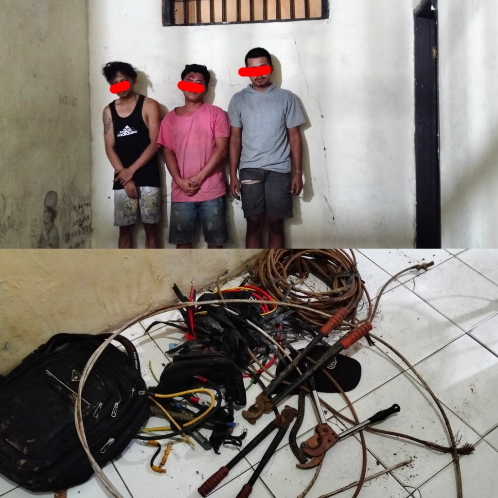 Sumbar24jam.com|Pessel-Aksi nekat tiga tersangka pencurian kabel di area tower telekomunikasi milik PT Tower Bersama Group di kampung Sungai Rumbai Nagari Riak Danau Kecamatan Basa Ampek Balai Tapan Kabupaten Pesisir Selatan, berhasil digagalkan berkat kerja sama cepat antara warga dan aparat kepolisian, Rabu (19/11/2025).
