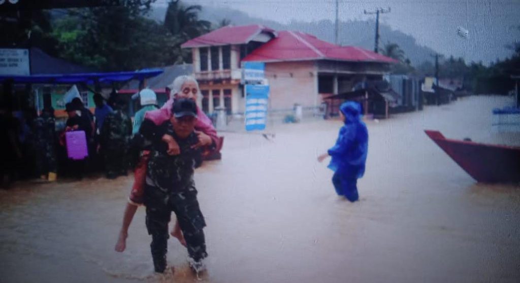Sumbar24jam.com|Pessel-Bersama Pemerintah Daerah, Kabupaten Pesisir Selatan, POLRI khususnya Polres Pessel, Dandim 0311/ Pessel Letkol Czi Theodurus, S.T.,M. Han bantu masyarakat lakukan evakuasi yang terdampak banjir.