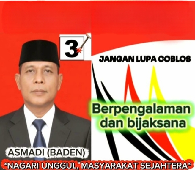 Asmadi yang biasa disapa Baden juga menyampaikan rasa terima kasih kepada seluruh masyarakat Nagari Binjai Kecamatan Ranah Ampek Hulu Tapan atas kepercayaan yang diberikan kepadanya Menurut Asmadi yang biasa disapa Baden amanah tersebut adalah tanggung jawab besar yang harus dijalankan dengan penuh integritas.