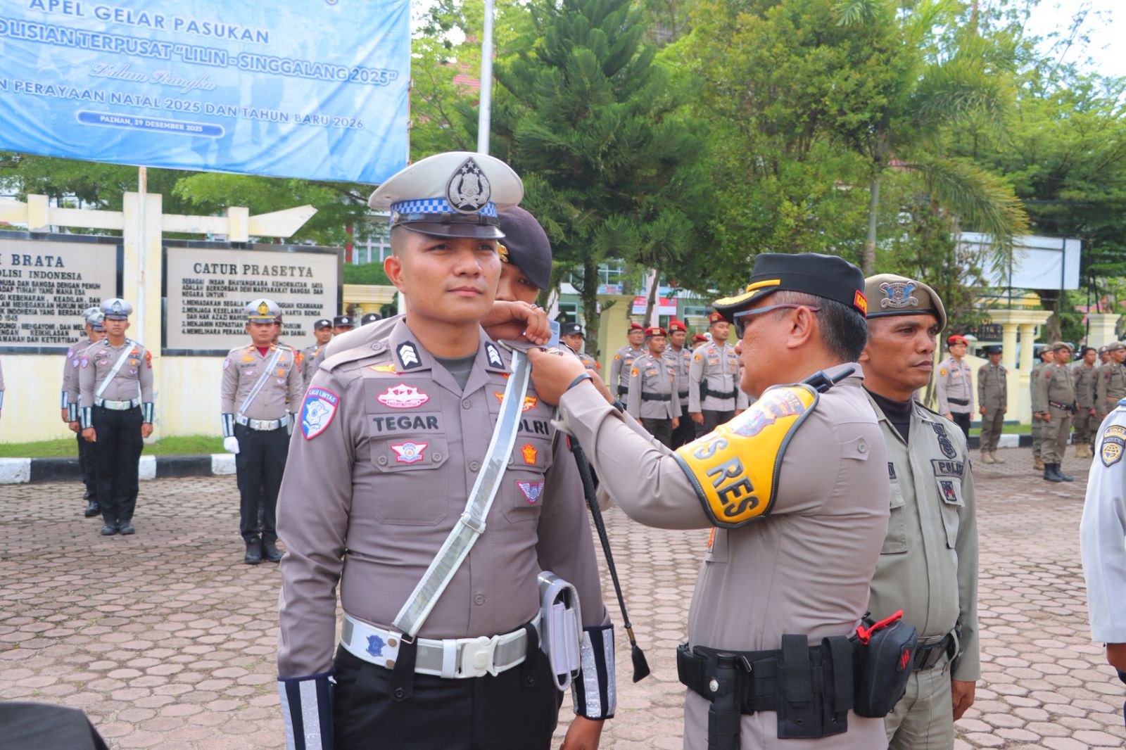 Dilanjutkan pemasangan pita operasi lilin tahun 2025 pada perwakilan personil oleh Kapolres Pessel.(Al)