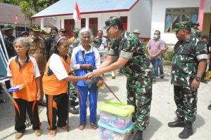 Pangdam dan rombongan juga mengunjungi posko pengungsian yang berada di Desa Simaninggir Dua serta menyerahkan bantuan kepada masyarakat korban bencana alam.