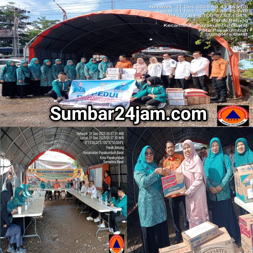 Limapuluh Kota,Sumbar24jam.com – Bencana alam yang terjadi di beberapa titik di kabupaten 50 kota membawa kesedihan yang mendalam atas musibah yang dialami warga masyarakat kabupaten Limapuluh Kota. Rasa empati terhadap warga terdampak bencana Tim Penggerak PKK Kota Payakumbuh, Gabungan Organisasi Wanita (GOW) Kota Payakumbuh, serta Forum Anak Kota Payakumbuh menyalurkan bantuan kemanusiaan berupa bahan kebutuhan dapur dan sembako bagi korban bencana alam.
