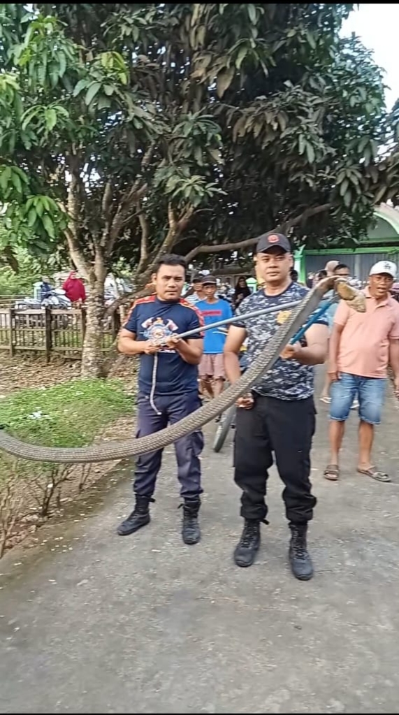 Sumbar24jam.Com|Pessel – Dinas Pemadam Kebakaran (Damkar)Kabupaten Pesisir Selatan Posko Tapan berhasil mengevakuasi seekor ular berbisa jenis king...