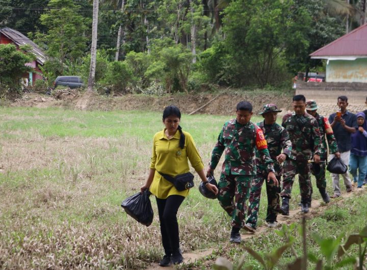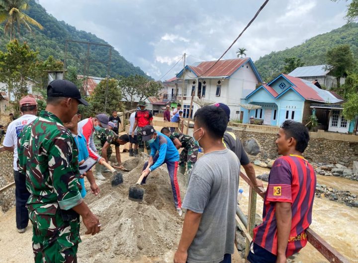 Sumbar24jam.com|Pessel-Angkat skop dan cangkul aduk.semen, tm Satgas Penanggulangan Bencana Alam Kodim 0311/Pessel bersama masyarakat melaksanakan kegiatan gotong...