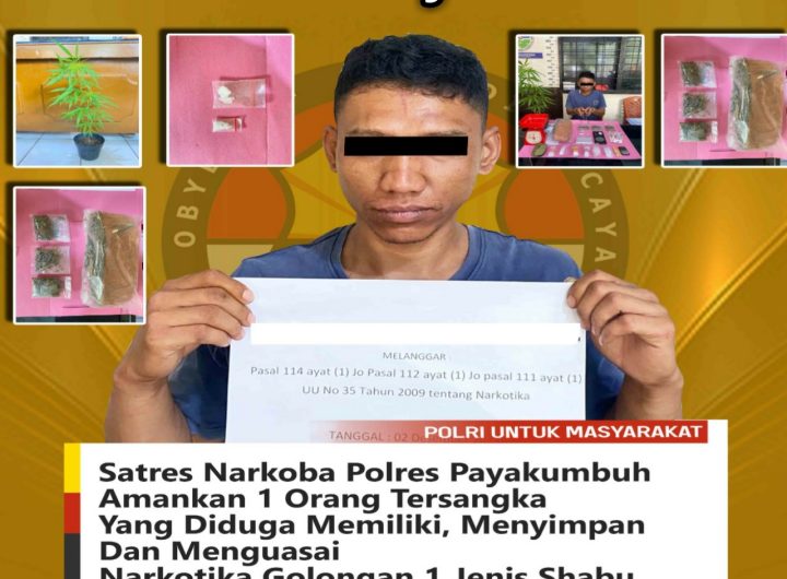Payakumbuh,Sumbar24jam.com– Tim Phantom Sat Narkoba Polres Payakumbuh kembali mengungkap kasus narkotika dengan meringkus satu orang tersangka yang...