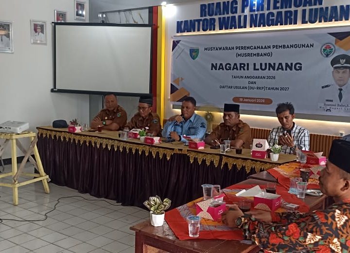 Musrenbang Nagari Lunang Bahas RKP 2026 dan DU-RKP 2027 2 min read Musrenbang Nagari Lunang Bahas RKP 2026 dan DU-RKP 2027 Sumbar24jam.com|Pessel — Pemerintah Nagari Lunang melaksanakan Musyawarah Perencanaan Pembangunan Nagari (Musrenbang Nagari) dalam rangka penyusunan Rencana Kerja...Selengkapnya....