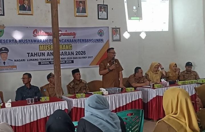Pemerintah Nagari Lunang Tengah Musrenbang Bahas RKP 2026 dan DU-RKP 2027 1 min read Pemerintah Nagari Lunang Tengah Musrenbang Bahas RKP 2026 dan DU-RKP 2027 Sumbar24jam.com|Pessel – Pemerintah Nagari Lunang Tengah melaksanakan Musyawarah Perencanaan Pembangunan Nagari (Musrenbang Nagari) dalam rangka penyusunan Rencana...Selengkapnya....