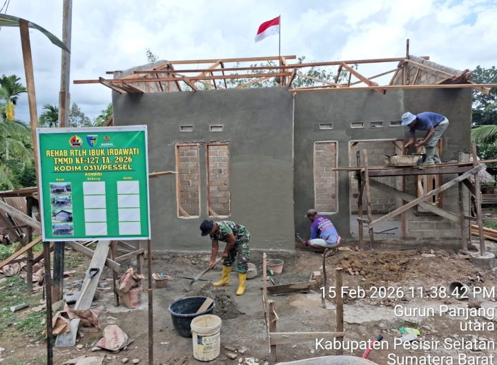 Sumbar24jam.com|Pessel-Personil Satgas TMMD Ta 2026, Kodim 0311/ Pessel bersama warga terus merampungkan rehab RLTH milik Irdawati warga...