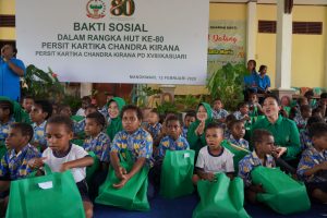 Manokwari,Sumbar24jam.com -Dalam rangka memperingati Hari Ulang Tahun ke-80 Persit Kartika Chandra Kirana, Persit KCK PD XVIII/Kasuari menggelar bakti sosial di Panti Asuhan Santa Maria Yayasan Amal Dharma Bakti, SP 8 Masni, Kabupaten Manokwari, Kamis (12/2/2026).