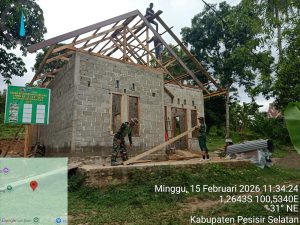 Sumbar24jam.com|Pessel-Personil Satgas TMMD Ta 2026, Kodim 0311/ Pessel bersama warga terus merampungkan rehab RLTH milik Irdawati warga Nagari Gurun Panjang Utara Kecamatan Bayang, pada Minggu ( 15/1/2026 ).