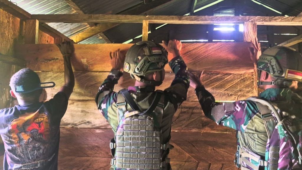 Eragayam, Sumbar24jam.com – Sebagai bentuk nyata kepedulian terhadap masyarakat di wilayah penugasan, Satgas Yonif 521/DY melaksanakan kegiatan karya bakti dengan membantu renovasi rumah salah satu warga di Distrik Eragayam, Kabupaten Mamberamo Tengah, Papua Pegunungan. (27/2/2026).