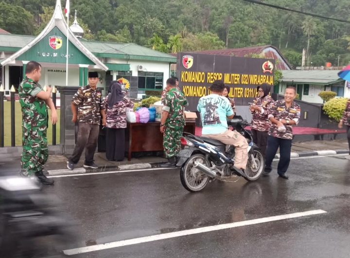 Sumbar24jam.com|Pessel-Kodim 0311/Pessel Pasi Teritorial Kodim bersama anggota dan FKPPI berbagi takjil gratis kepada masyarakat di depan Makodim...