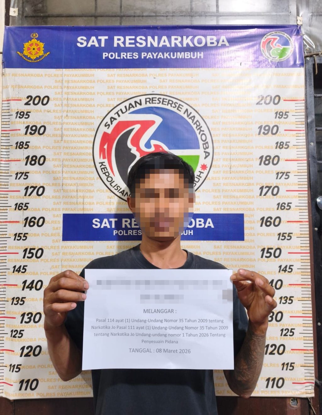 PAYAKUMBUH, Sumbar24jam.com – Polres Payakumbuh berhasil lakukan upaya paksa terhadap seorang laki-laki dewasa yang diduga terlibat tindak pidana penyalahgunaan narkotika jenis ganja pada hari Minggu (08/03/2026) sekitar pukul 23.00 WIB.