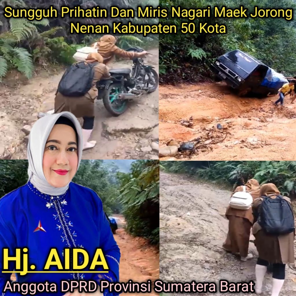 Aida bercerita sesampai dirinya di tempat pertemuan dengan masyarakat di Jorong Nenan, masyarakat sebagian besar pada umumnya, memohon ada pembangunan jalan agar mereka bjsa hidup dengan nyaman.”Sedih sekali saya melihat hal ini,” Tambahnya.