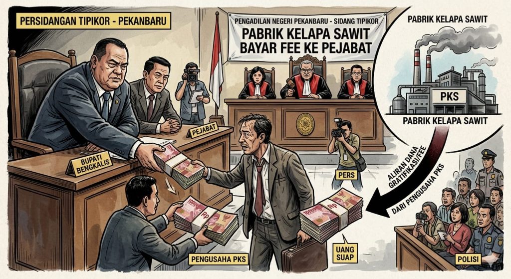 Kekhawatiran ini bukan tanpa alasan. Publik teringat kembali pada skandal besar yang menimpa mantan Bupati Bengkalis beberapa tahun 2020 silam. Dalam persidangan kasus korupsi proyek jalan lingkar, terkuak fakta mengejutkan mengenai adanya aliran dana hingga puluhan miliar rupiah ke rekening pribadi kepala daerah. Dana tersebut dikonfirmasi sebagai fee atau “setoran” tetap dari sejumlah Pabrik Kelapa Sawit (PKS) yang beroperasi di wilayah tersebut.